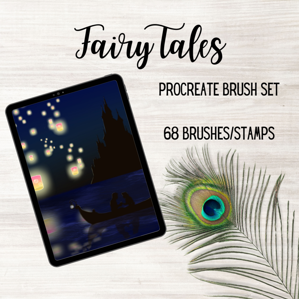This huge group of Procreate brushes features things related to the fairy tales of the Magic Kingdom. You'll find iconic castles, animals and characters like Cinderella, Tiana, Ariel and more. 68 brushes total makes this my largest pack to date!